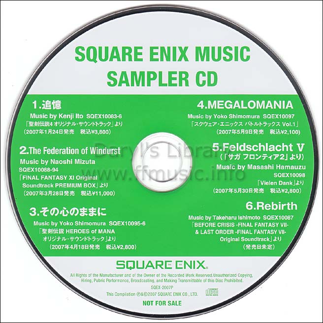 SQUARE ENIX MUSIC SAMPLER CDSQUARE ENIX MUSIC SAMPLER CDSQUARE ENIX MUSIC SAMPLER CD
