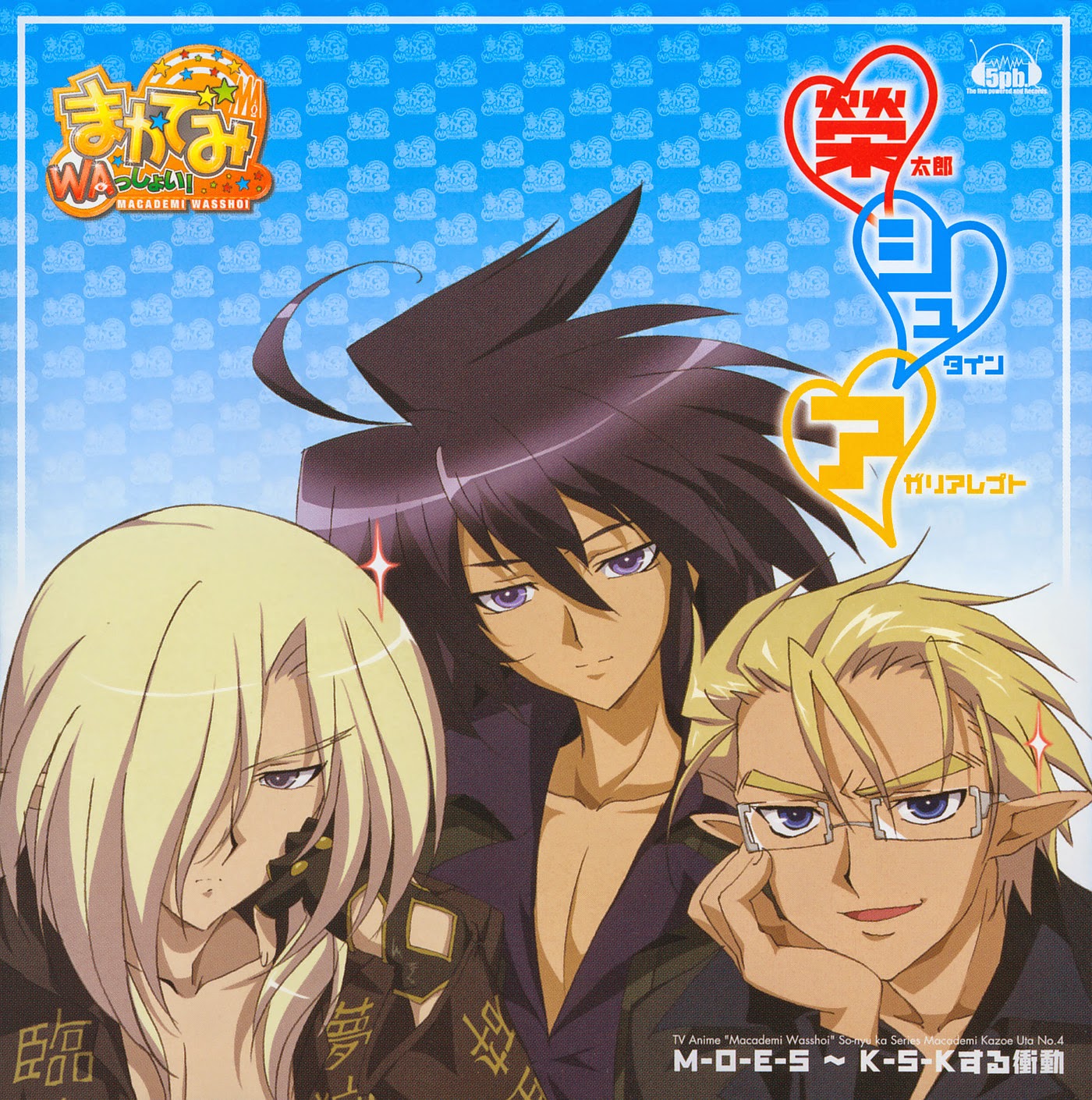 Macademi Wasshoi! Insert Song Series Macademi Kazoe Uta Sono 4 "M-O-E-S ~ K-S-K Suru Shoudou" / Ataro, Stein & Agaliarept (CV.Takuma Terashima, Nobuyuki Hiyama & Junichi Suwabe)TVアニメ「まかでみ・WAっしょい!」挿入歌シリーズ まかでみ数え歌 其の 4 M-O-E-S ~ K-S-Kする衝動 / 榮太郎, シュタイン & アガリアレプト (CV.寺島拓篤, 檜山修之 & 諏訪部順一)Macademi Wasshoi! Insert Song Series Macademi Kazoe Uta Sono 4 "M-O-E-S ~ K-S-K Suru Shoudou" / Ataro, Stein & Agaliarept (CV.Takuma Terashima, Nobuyuki Hiyama & Junichi Suwabe)